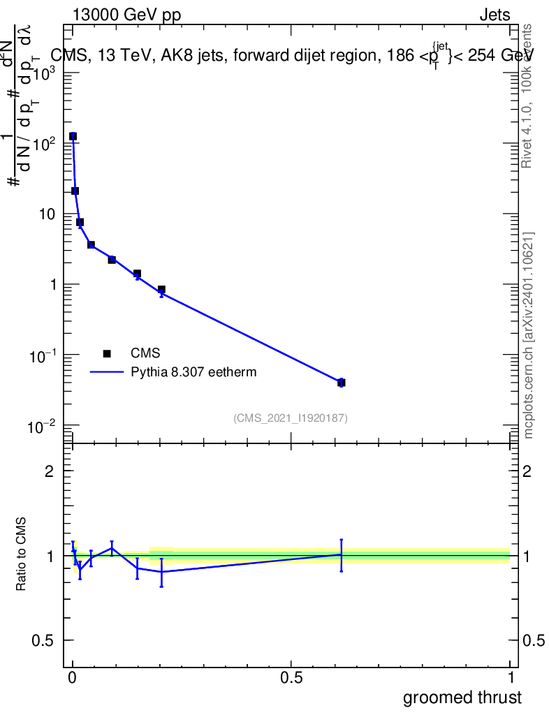 Lines: data, pythia8 8.307 eetherm |