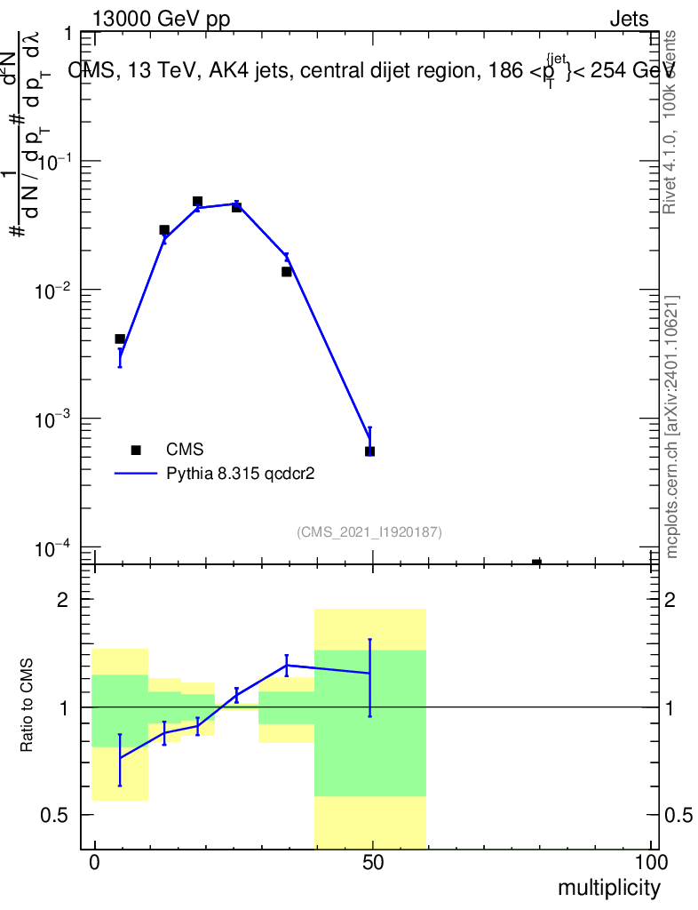 Lines: data, pythia8 8.315 qcdcr2 |