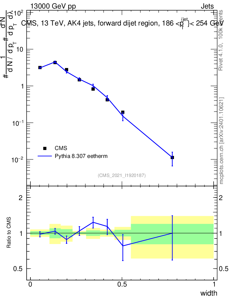 Lines: data, pythia8 8.307 eetherm |