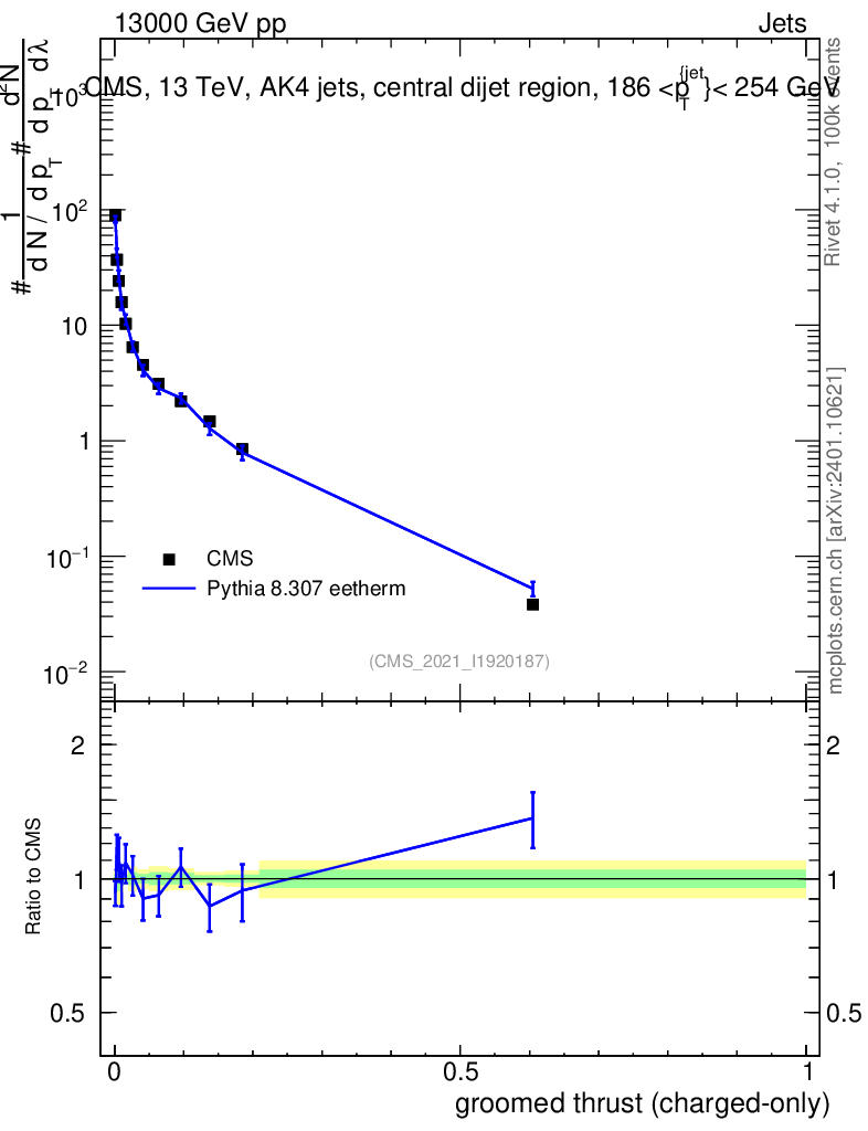 Lines: data, pythia8 8.307 eetherm |