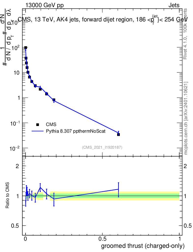 Lines: data, pythia8 8.307 ppthermNoScat |