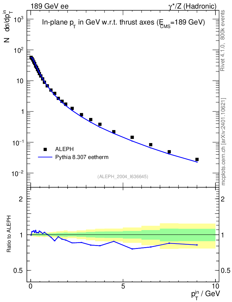 Lines: data, pythia8 8.307 eetherm |