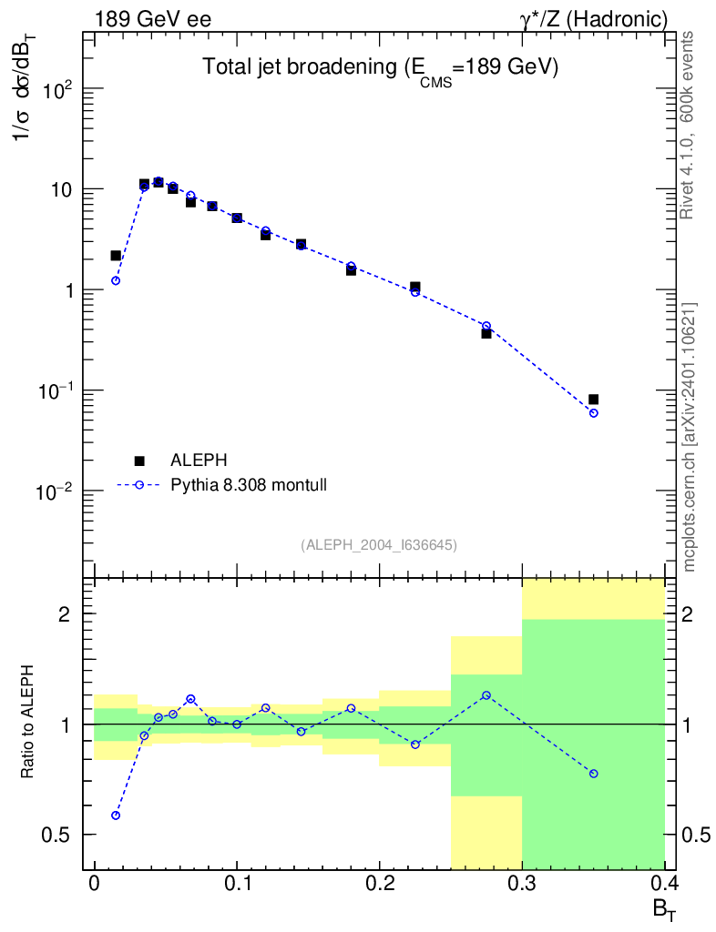 Lines: data, pythia8 8.308 montull |