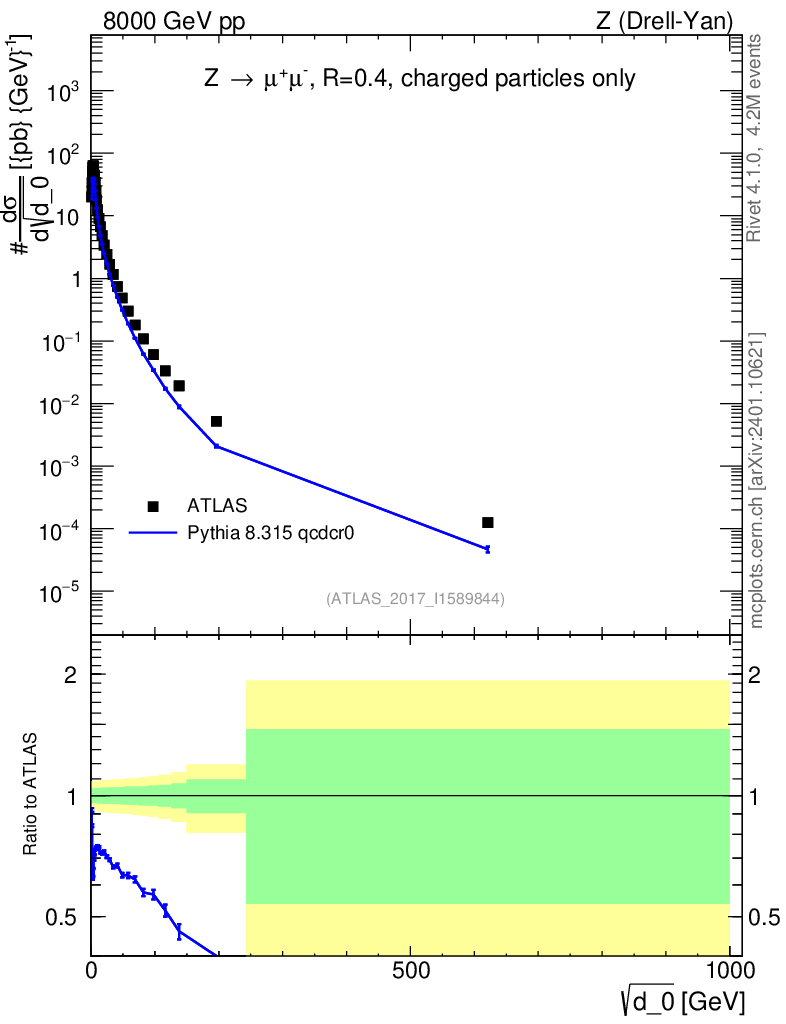 Lines: data, pythia8 8.315 qcdcr0 |