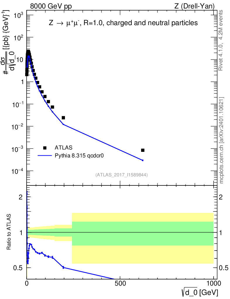 Lines: data, pythia8 8.315 qcdcr0 |