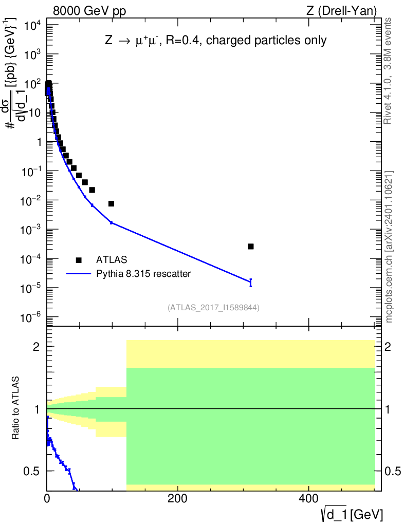Lines: data, pythia8 8.315 rescatter |