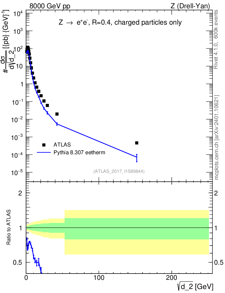 Lines: data, pythia8 8.307 eetherm |
