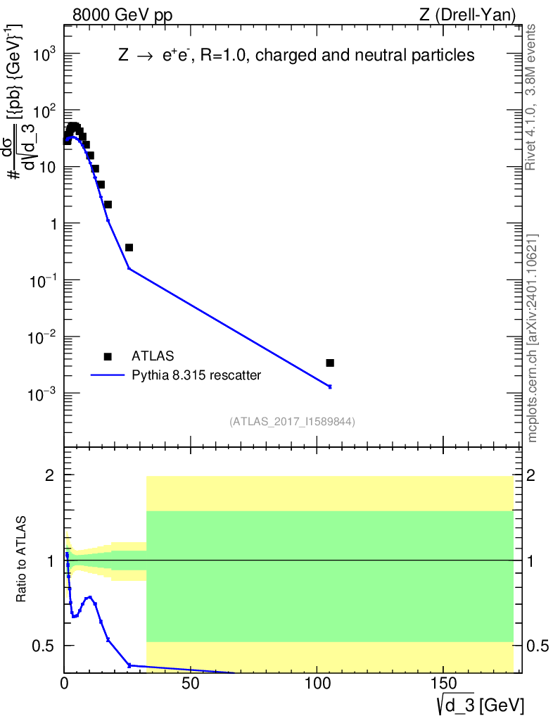 Lines: data, pythia8 8.315 rescatter |