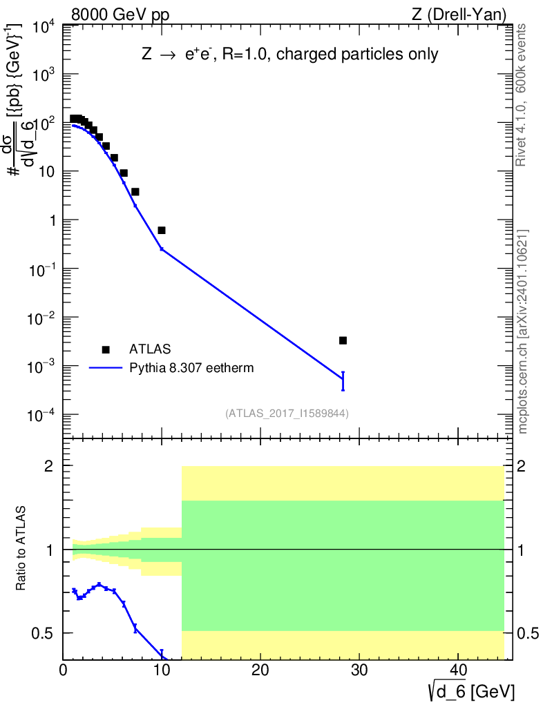Lines: data, pythia8 8.307 eetherm |