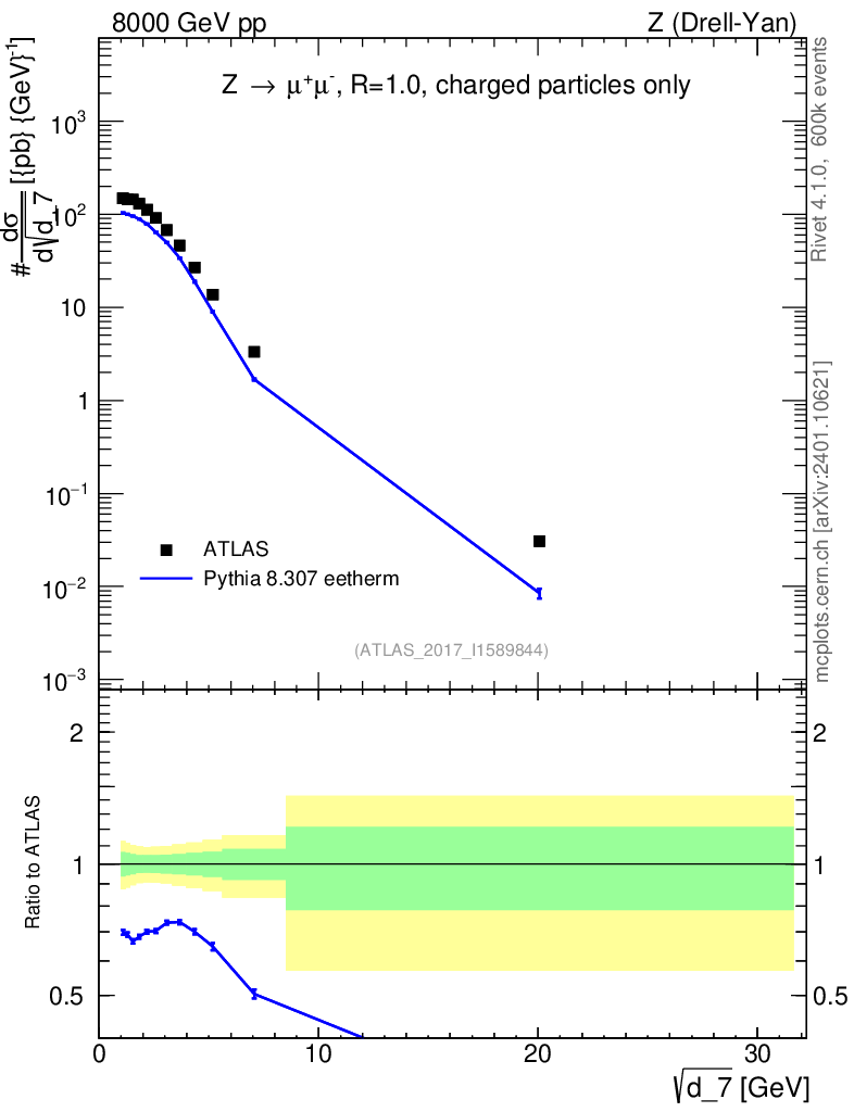 Lines: data, pythia8 8.307 eetherm |