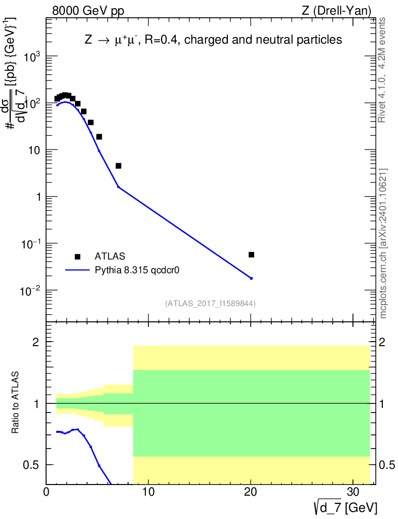 Lines: data, pythia8 8.315 qcdcr0 |