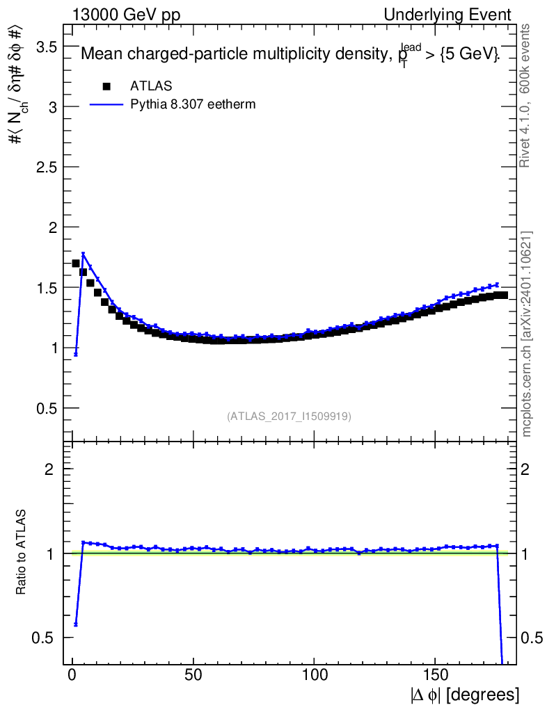 Plot of nch-vs-dphi in 13000 GeV pp collisions