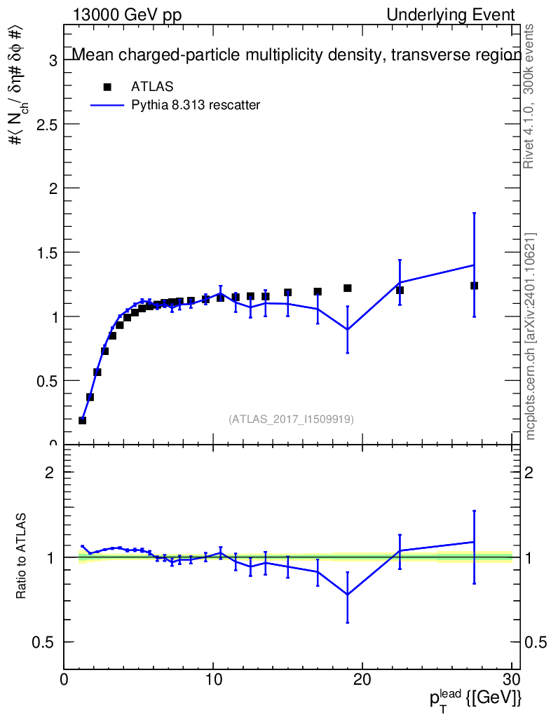 Lines: data, pythia8 8.313 rescatter |