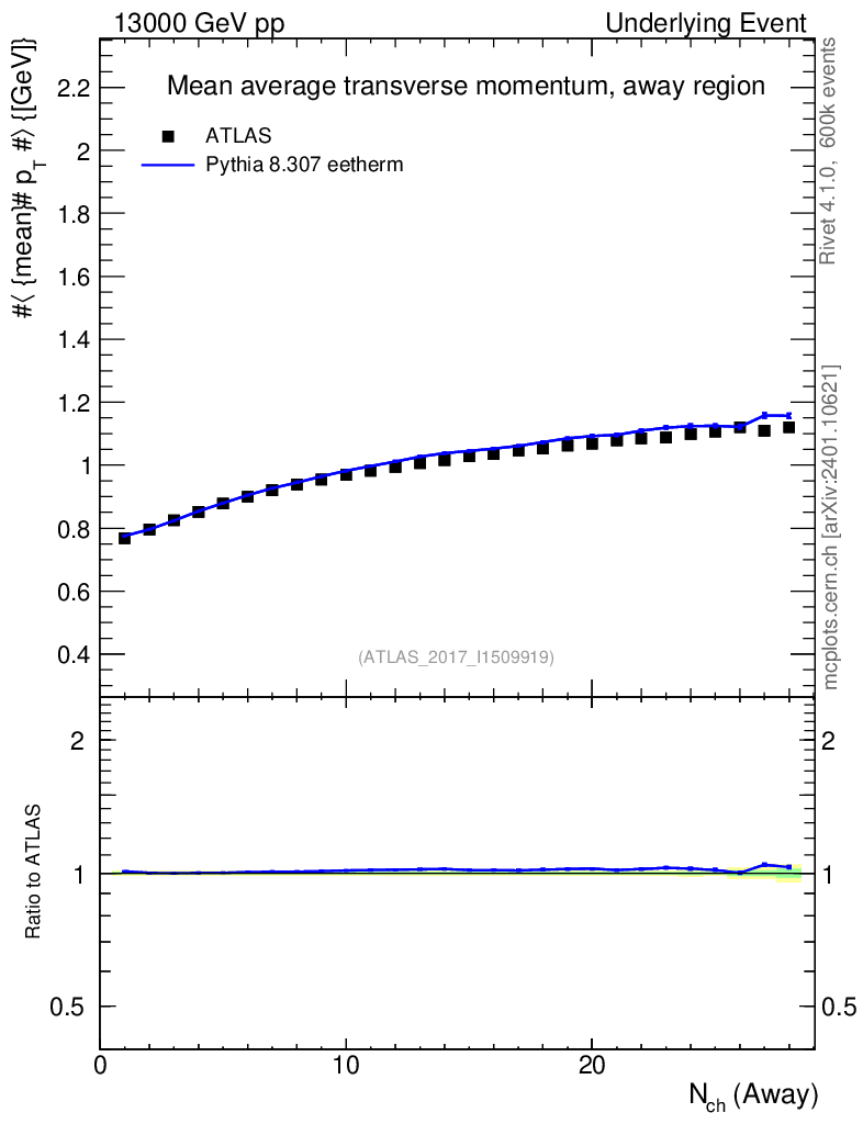 Plot of avgpt-vs-nch-away in 13000 GeV pp collisions