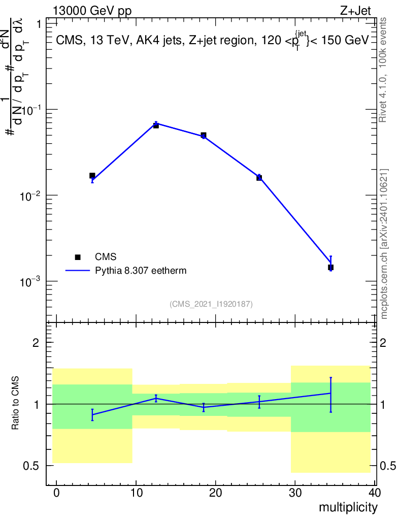 Lines: data, pythia8 8.307 eetherm |