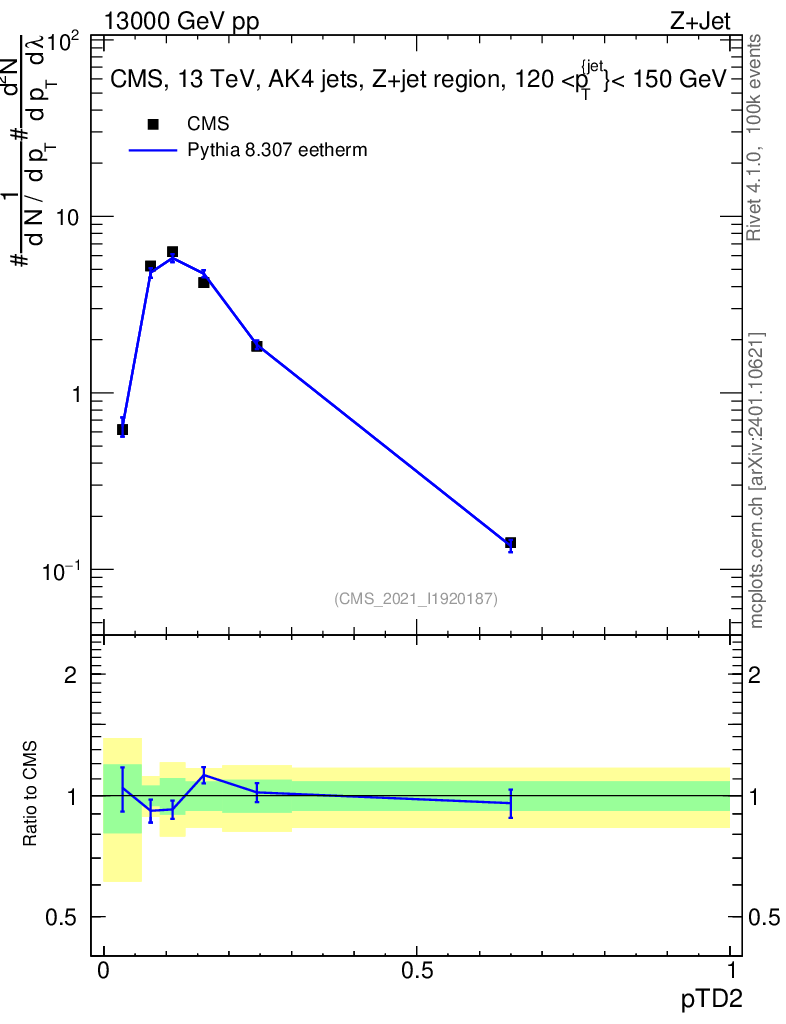 Lines: data, pythia8 8.307 eetherm |