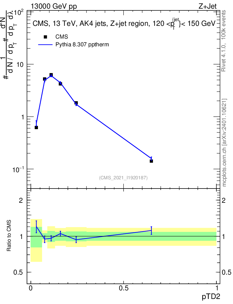 Lines: data, pythia8 8.307 pptherm |