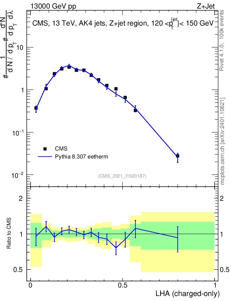 Lines: data, pythia8 8.307 eetherm |