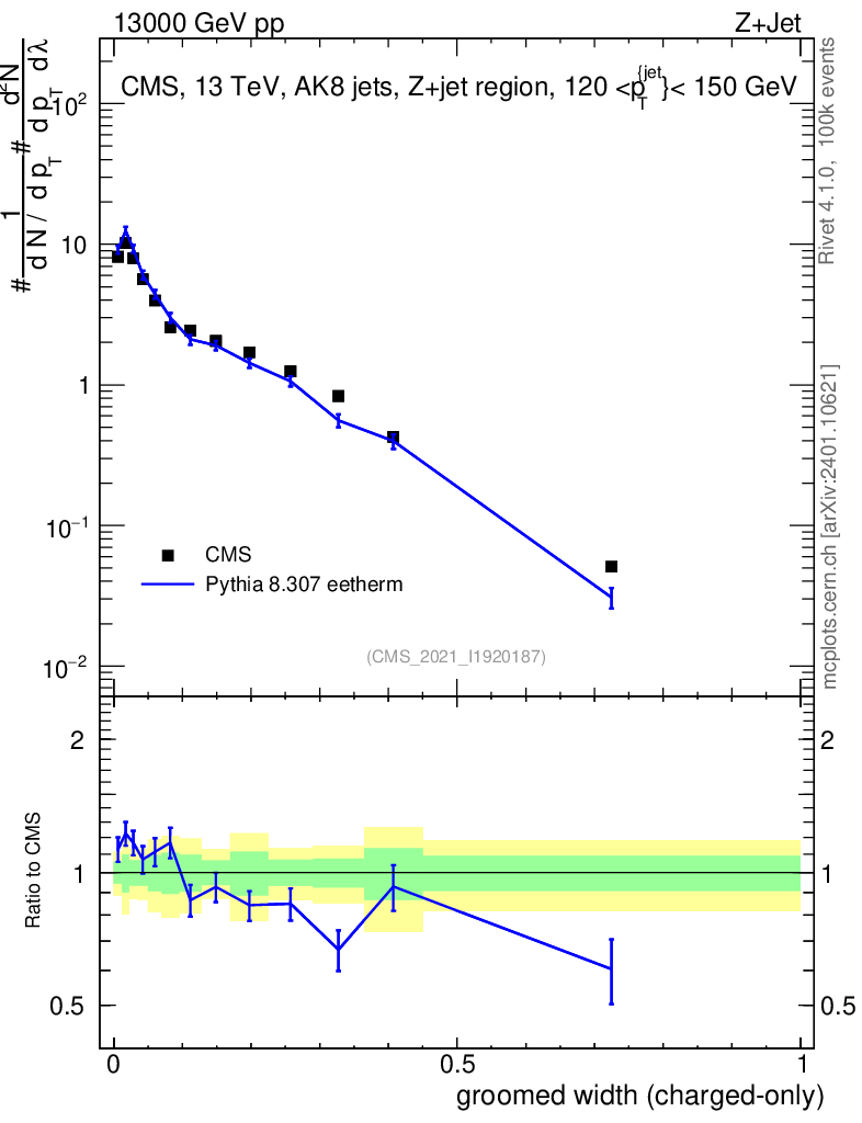 Lines: data, pythia8 8.307 eetherm |