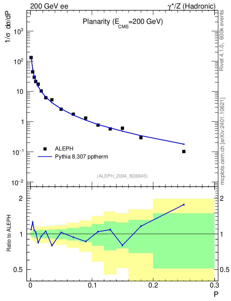 Lines: data, pythia8 8.307 pptherm |