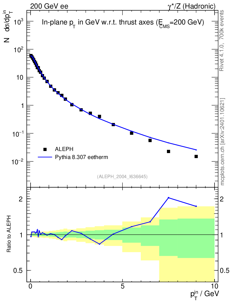 Lines: data, pythia8 8.307 eetherm |