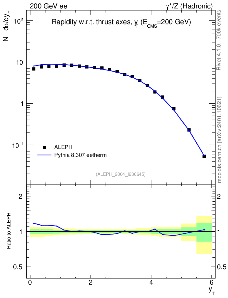 Lines: data, pythia8 8.307 eetherm |
