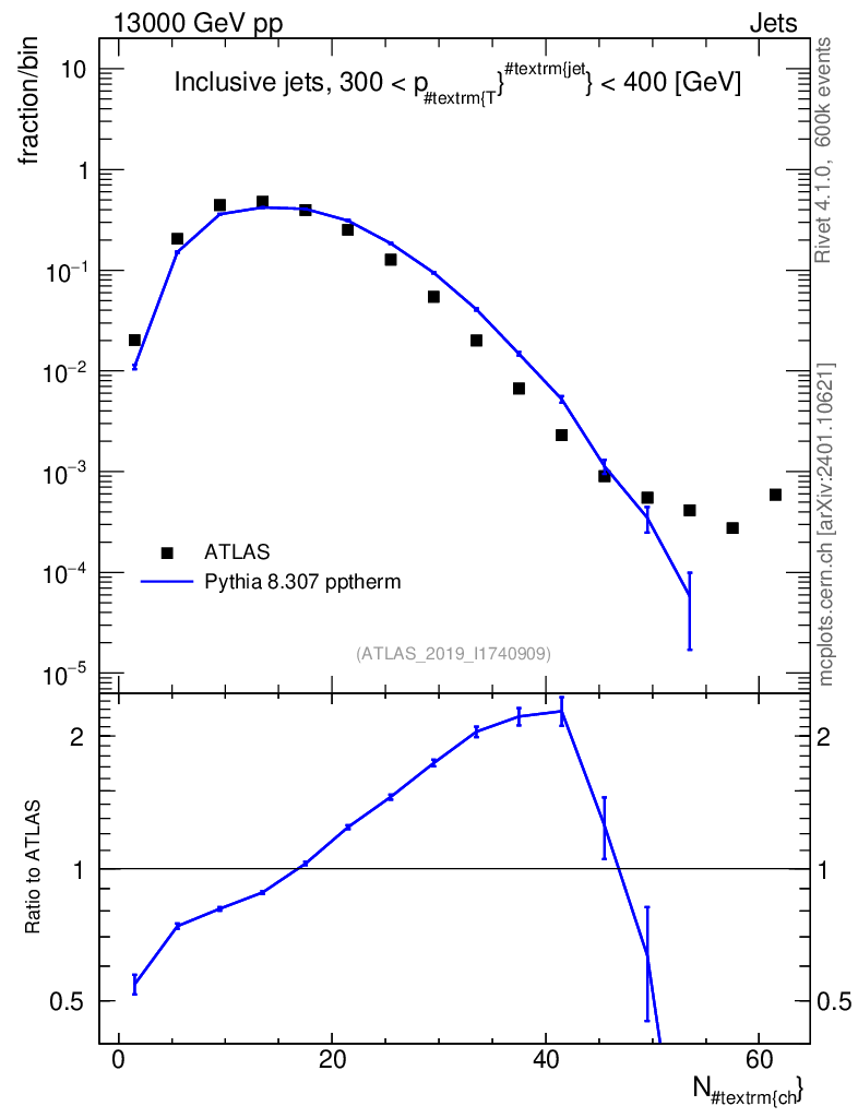Lines: data, pythia8 8.307 pptherm |