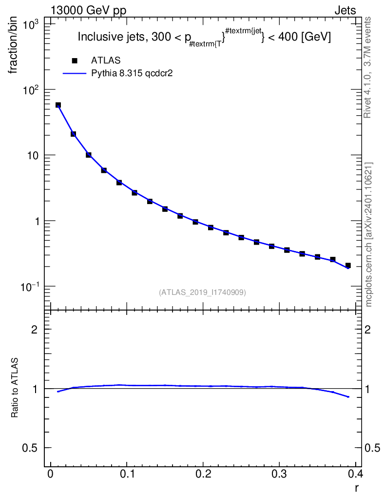 Lines: data, pythia8 8.315 qcdcr2 |