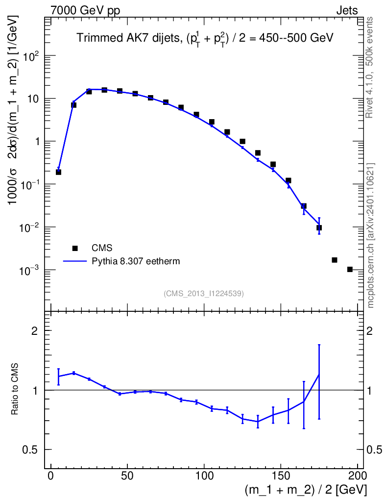 Plot of jj.m.trim in 7000 GeV pp collisions