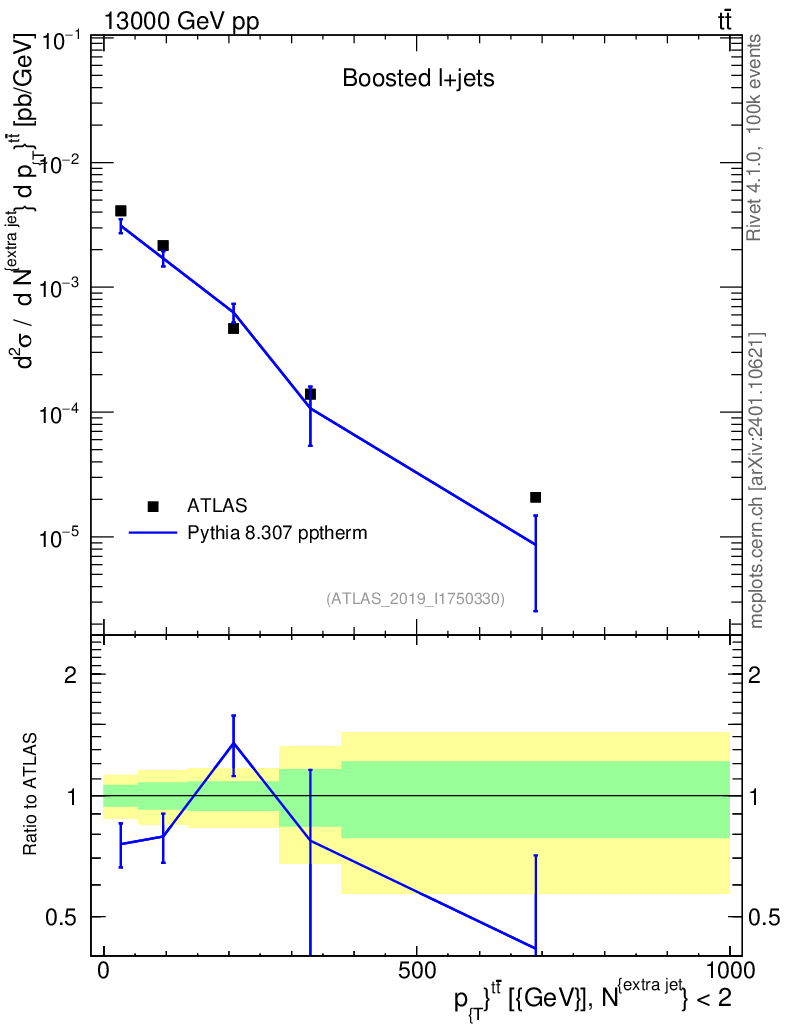 Lines: data, pythia8 8.307 pptherm |