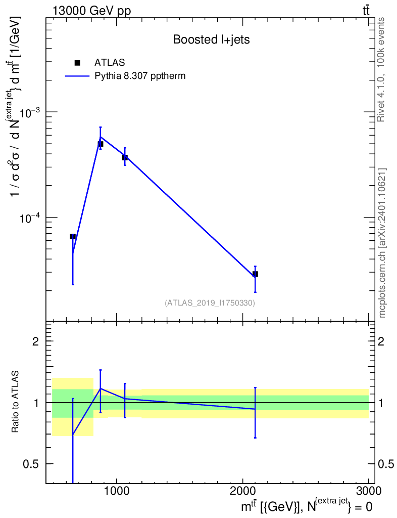 Lines: data, pythia8 8.307 pptherm |