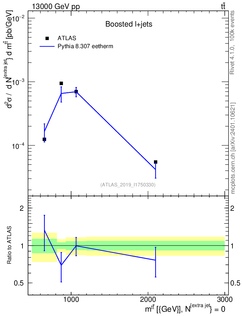 Plot of ttbar.m in 13000 GeV pp collisions