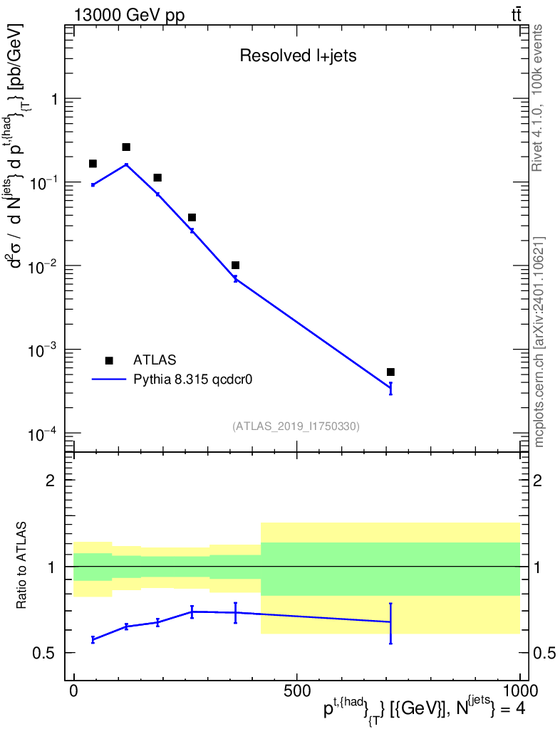 Lines: data, pythia8 8.315 qcdcr0 |