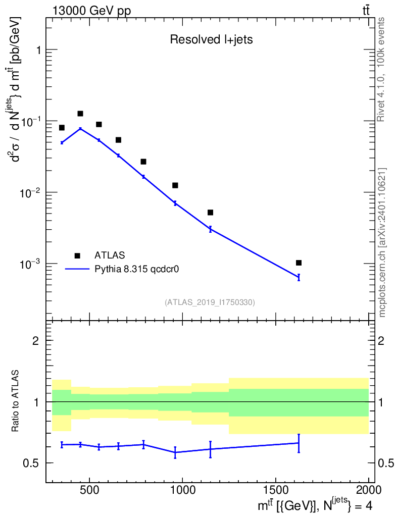 Lines: data, pythia8 8.315 qcdcr0 |