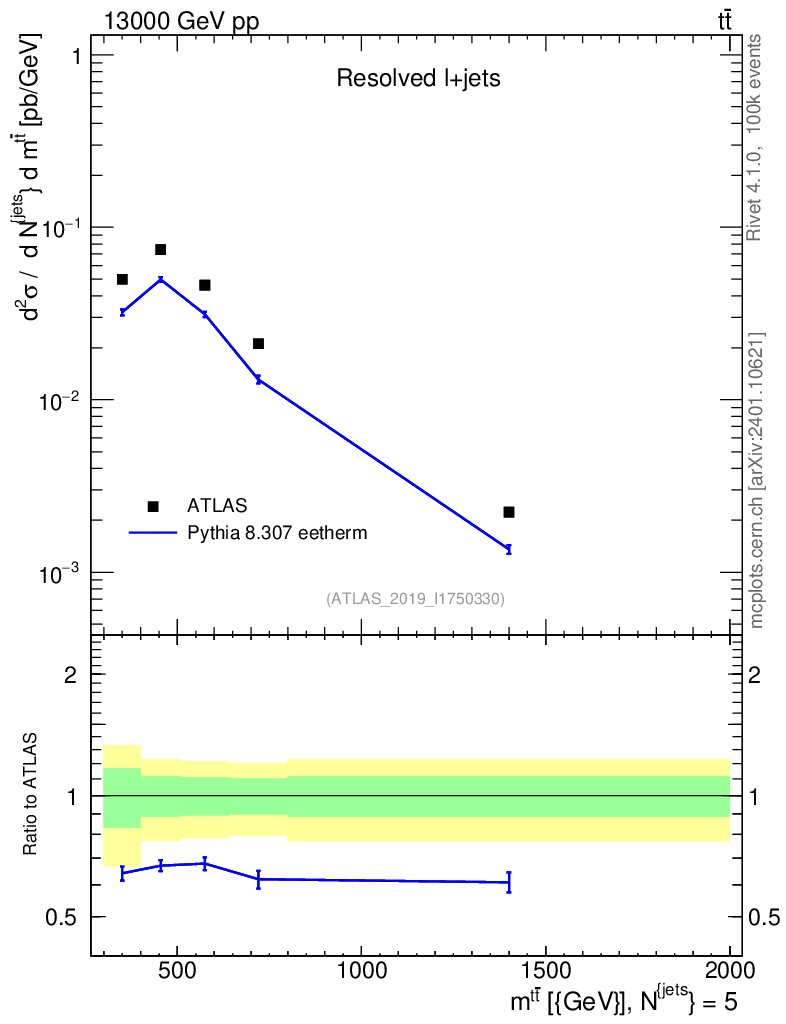 Lines: data, pythia8 8.307 eetherm |