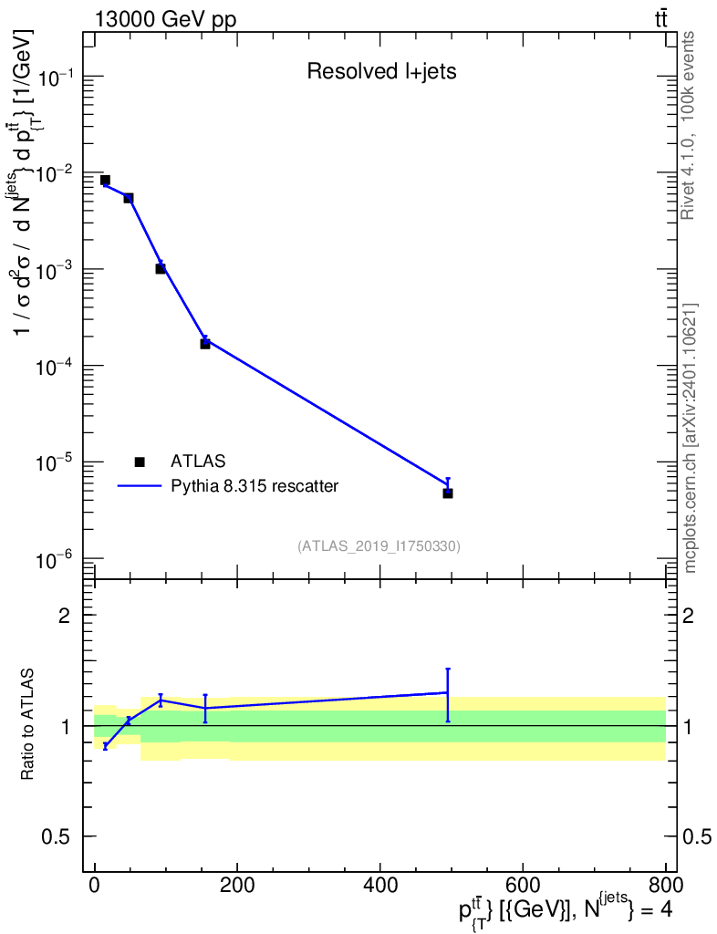 Lines: data, pythia8 8.315 rescatter |