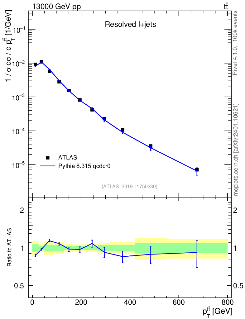 Lines: data, pythia8 8.315 qcdcr0 |