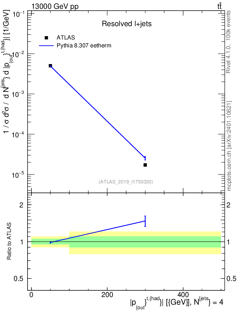 Lines: data, pythia8 8.307 eetherm |