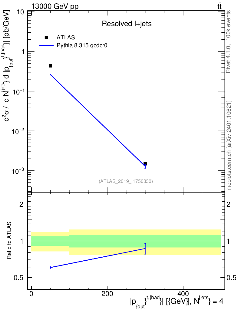 Lines: data, pythia8 8.315 qcdcr0 |