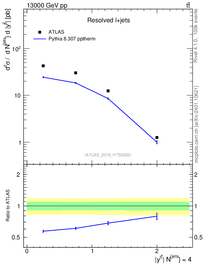 Lines: data, pythia8 8.307 pptherm |