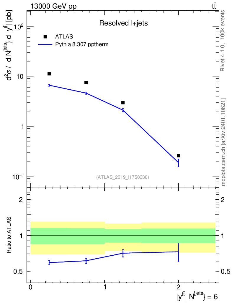 Lines: data, pythia8 8.307 pptherm |