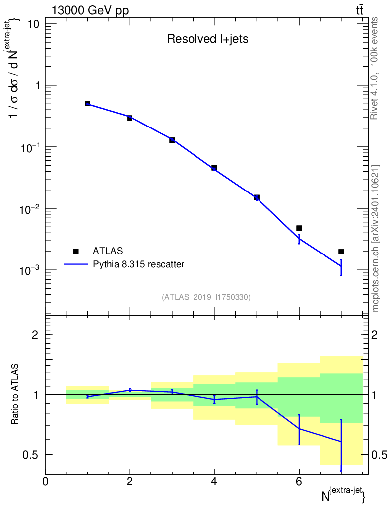 Lines: data, pythia8 8.315 rescatter |