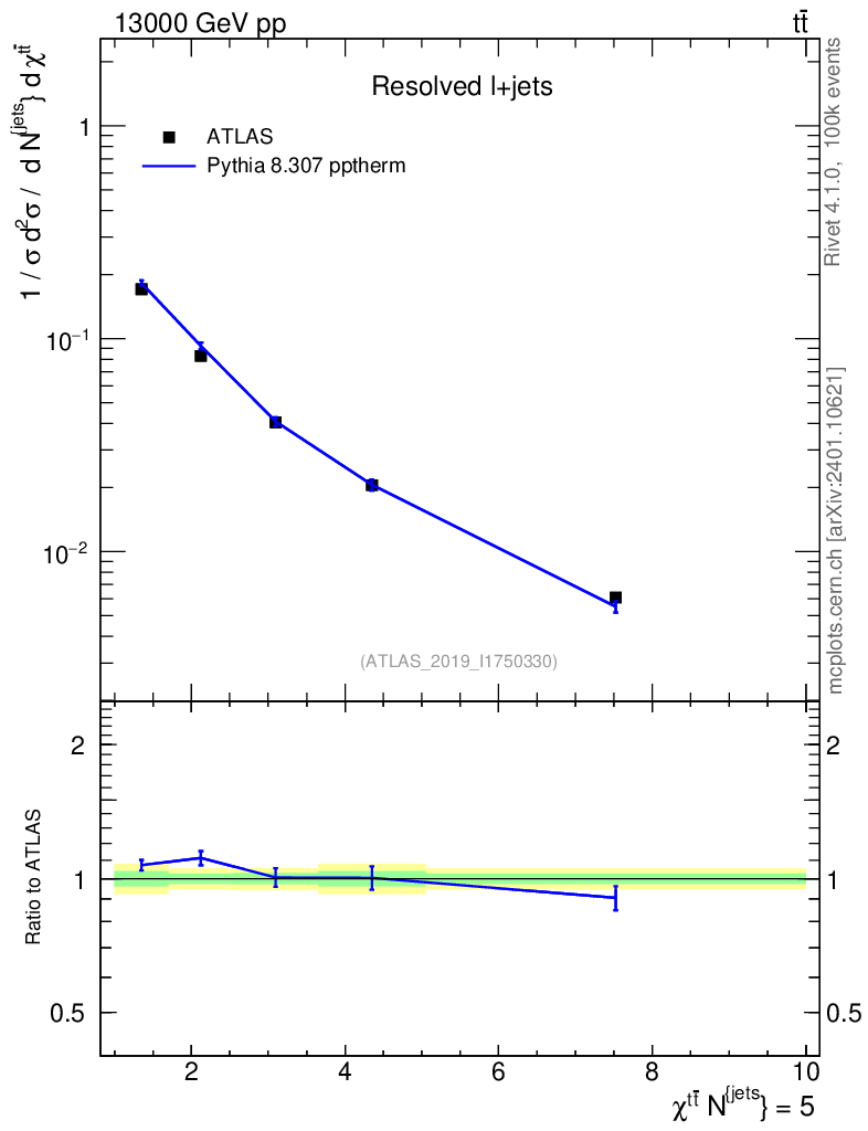 Lines: data, pythia8 8.307 pptherm |