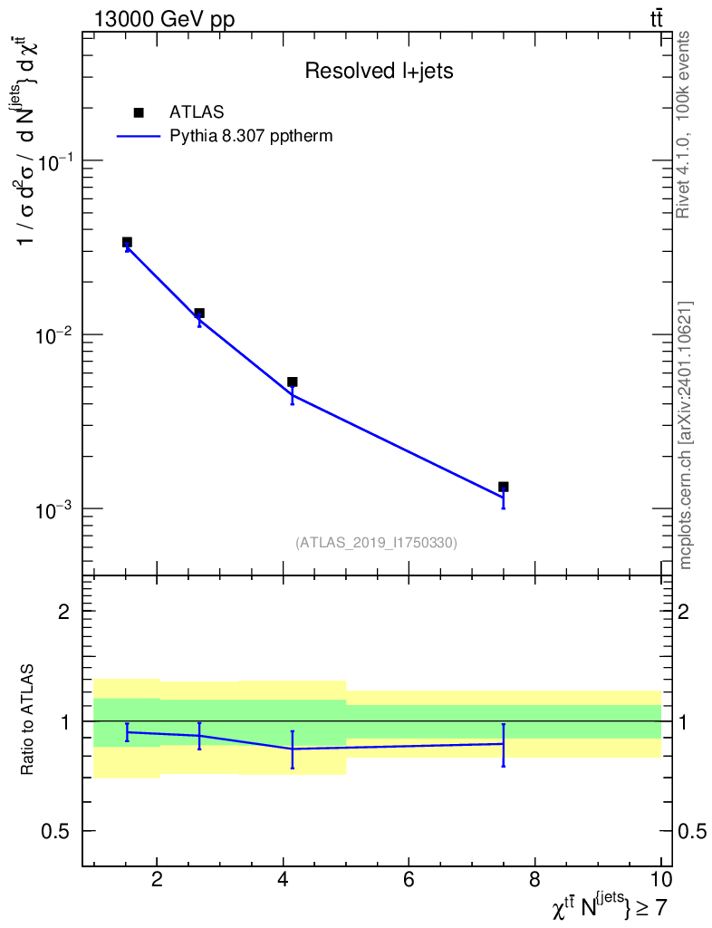 Lines: data, pythia8 8.307 pptherm |