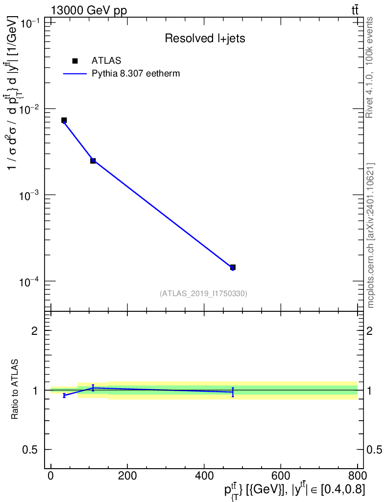 Lines: data, pythia8 8.307 eetherm |