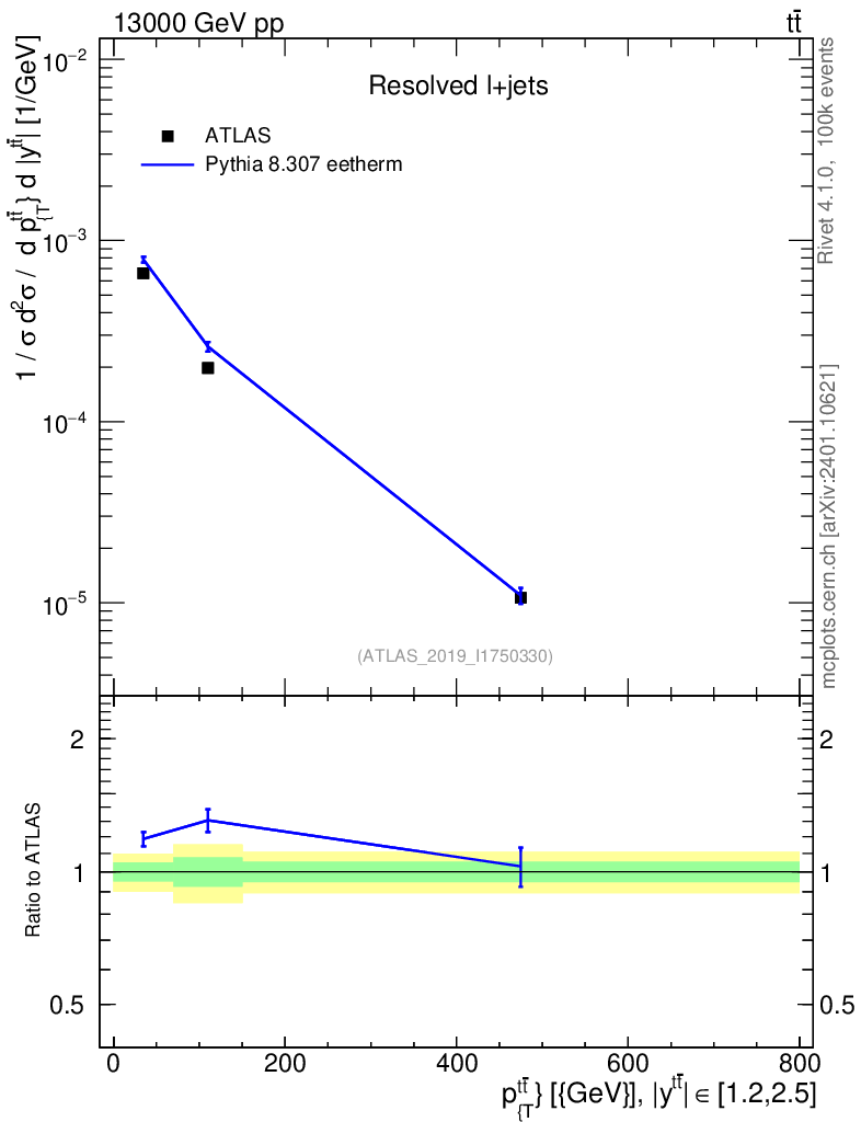 Lines: data, pythia8 8.307 eetherm |