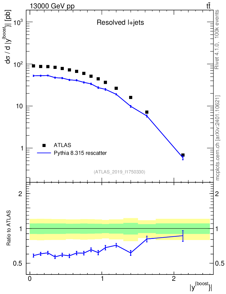 Plot of ttbar.yboost in 13000 GeV pp collisions
