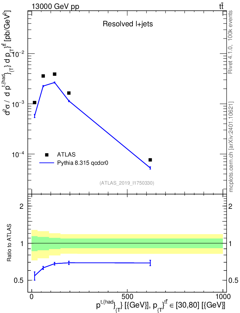Lines: data, pythia8 8.315 qcdcr0 |