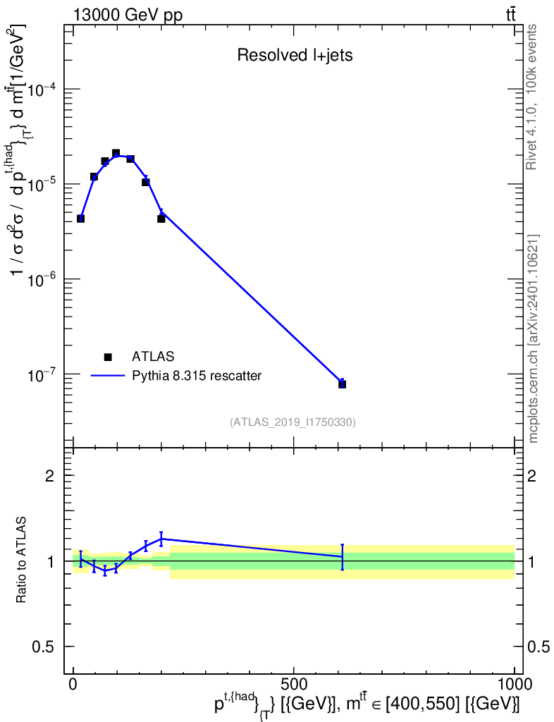 Lines: data, pythia8 8.315 rescatter |