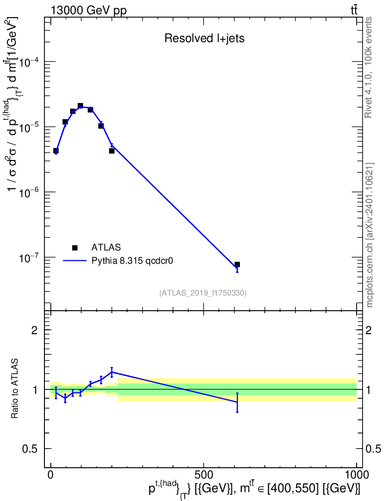 Lines: data, pythia8 8.315 qcdcr0 |
